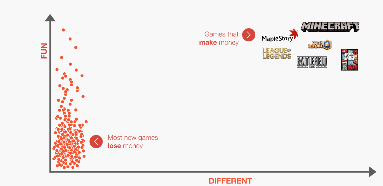 At $200M per game, copycat behavior seems rational: you are trying to avoid disaster. You don't ask what might be great, you ask how big the market is and whether you can capture 10% of it. That logic constrains a developer’s creative choices and locks them into established genres. Over time, the industry’s games start to all look the same.